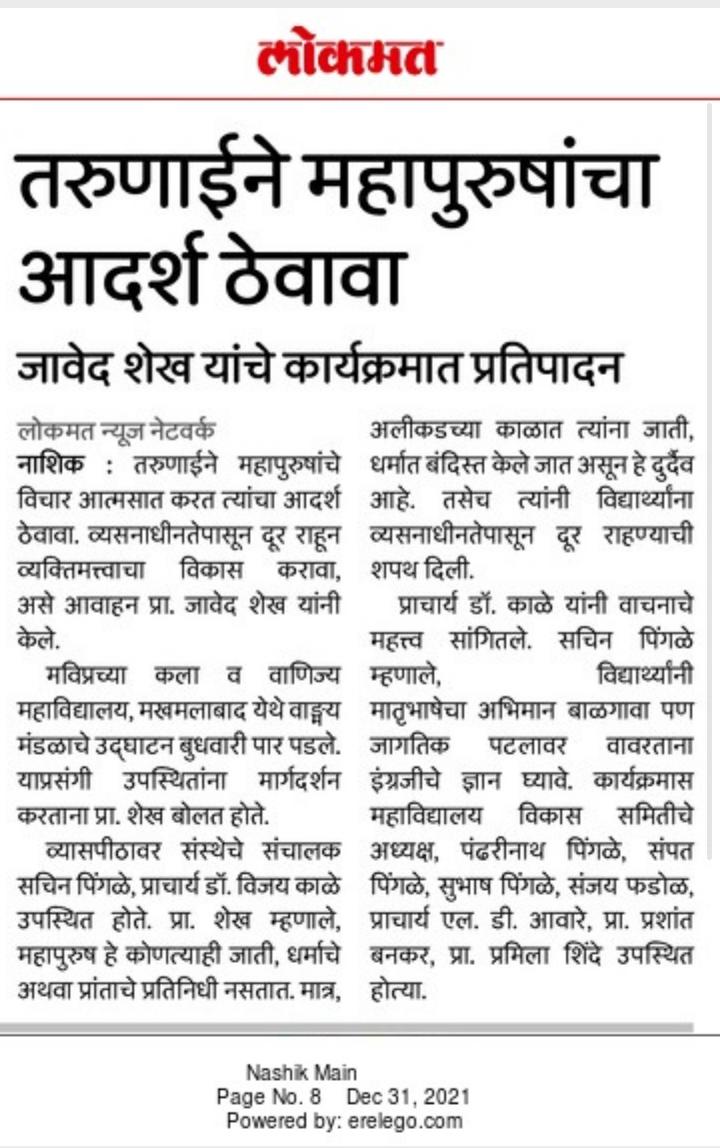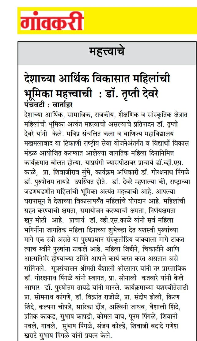• MVPS's Arts & Commerce College, Makhmalabad, Nashik–422002, (MS) India.